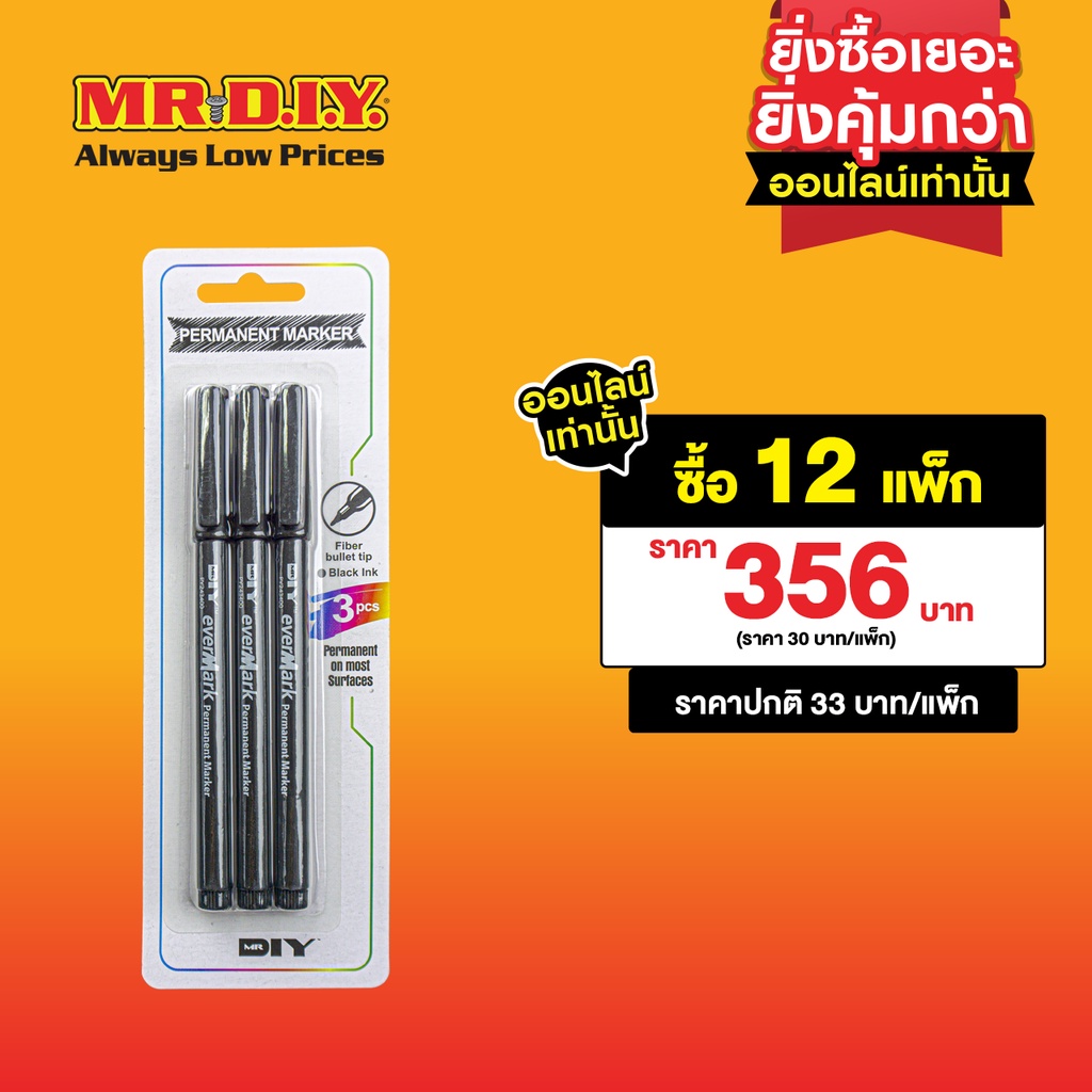MR.D.I.Y. ปากกามาร์คเกอร์ เขียนได้บนหลายพื้นผิว สีดำ (3 ชิ้น/แพ็ก)
