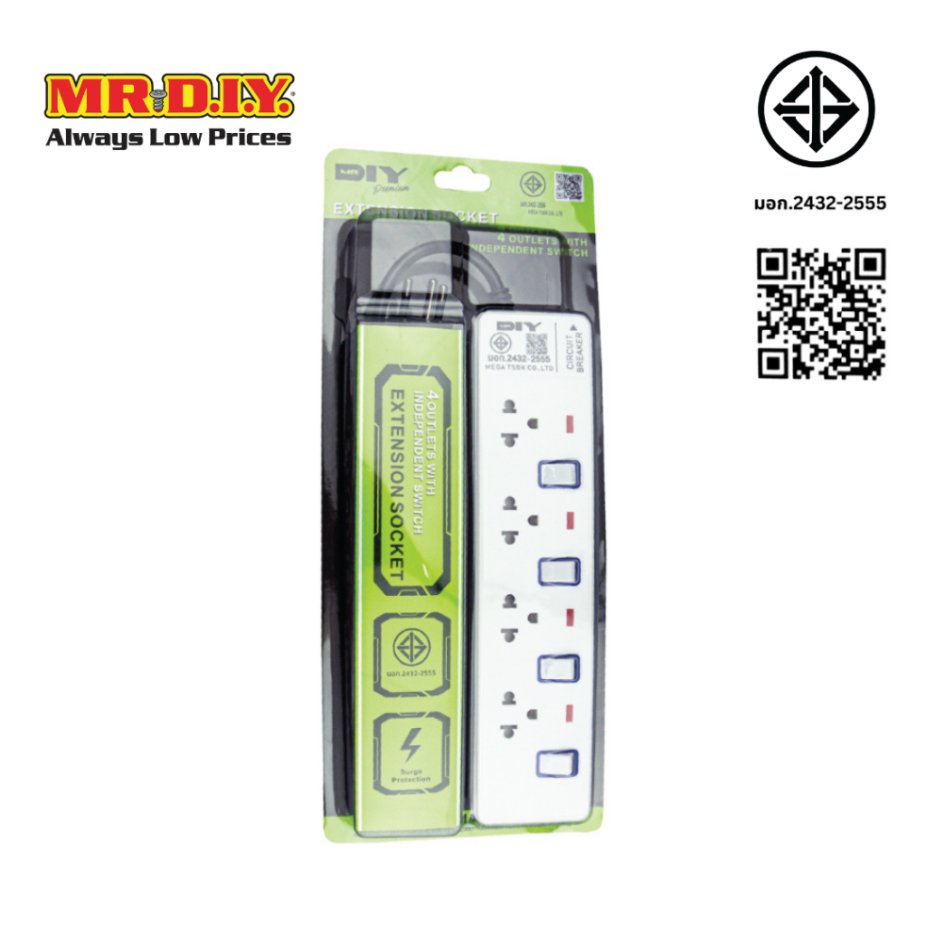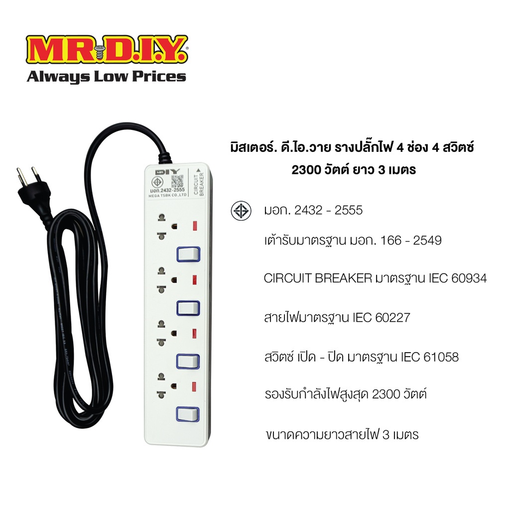 MR.D.I.Y. รางปลั๊กไฟ 4 ช่อง 4 สวิตช์ 2300 วัตต์ ยาว 3 เมตร