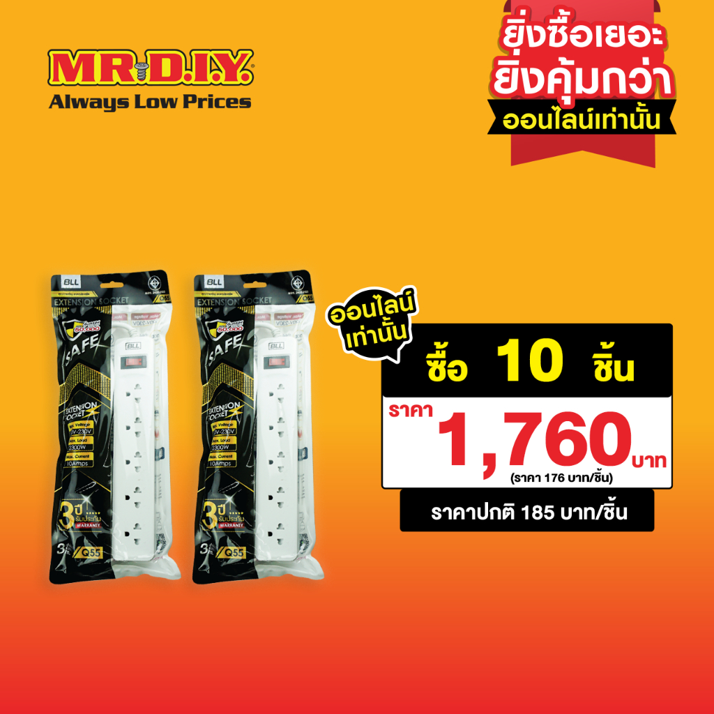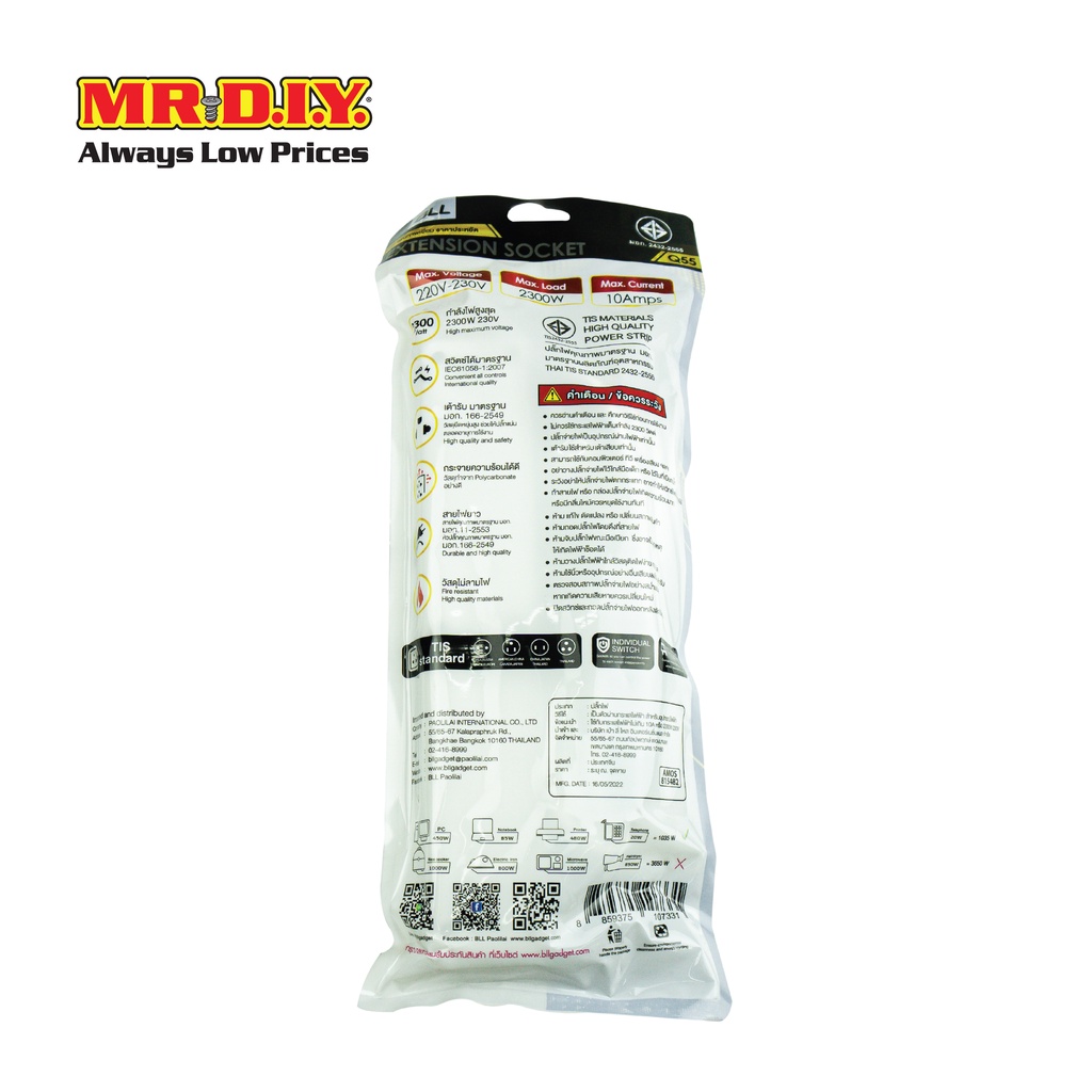 ปลั๊กไฟ BLL Q55 ปลั๊กพ่วง 5 ช่อง 1 สวิตช์ สายยาว 3 เมตร