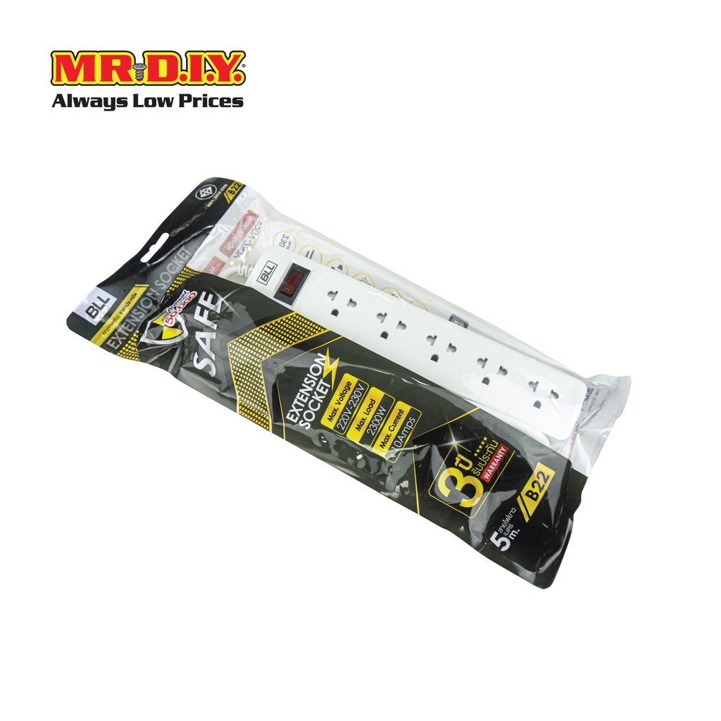 - เต้ารับ 5 ช่องมาตรฐานมี มอก.166-2549 วัสดุยืดหยุ่นสูง ช่วยให้ปลั๊กแน่นตลอดอายุการใช้งาน