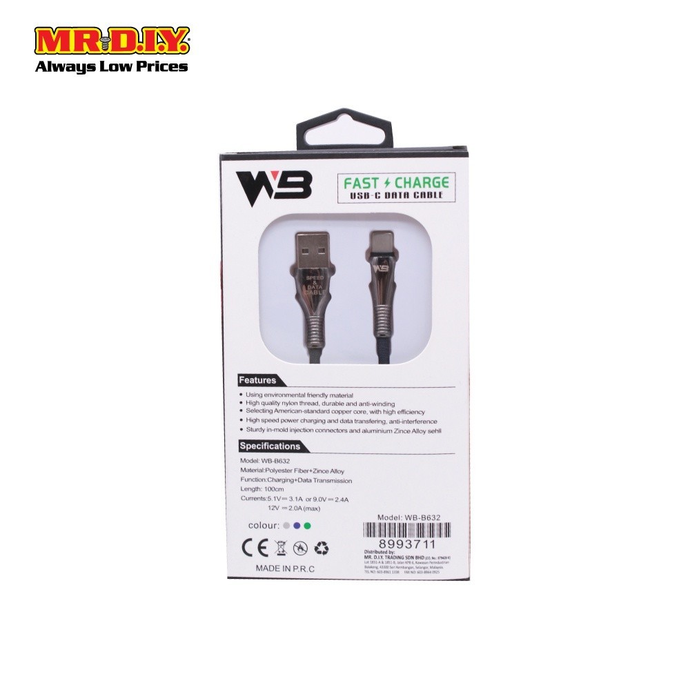 WB สายชาร์จเเละเชื่อมต่อข้อมูล USB to Type C ชาร์จเร็ว รุ่น WB-B632 ยาว 1 เมตร (3.1A)