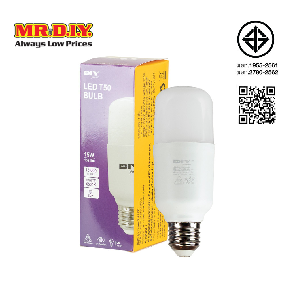 MR.D.I.Y. หลอดไฟ LED BULB T50 ขั้ว E27 กำลังไฟ 15 วัตต์ สีขาว Day Light
