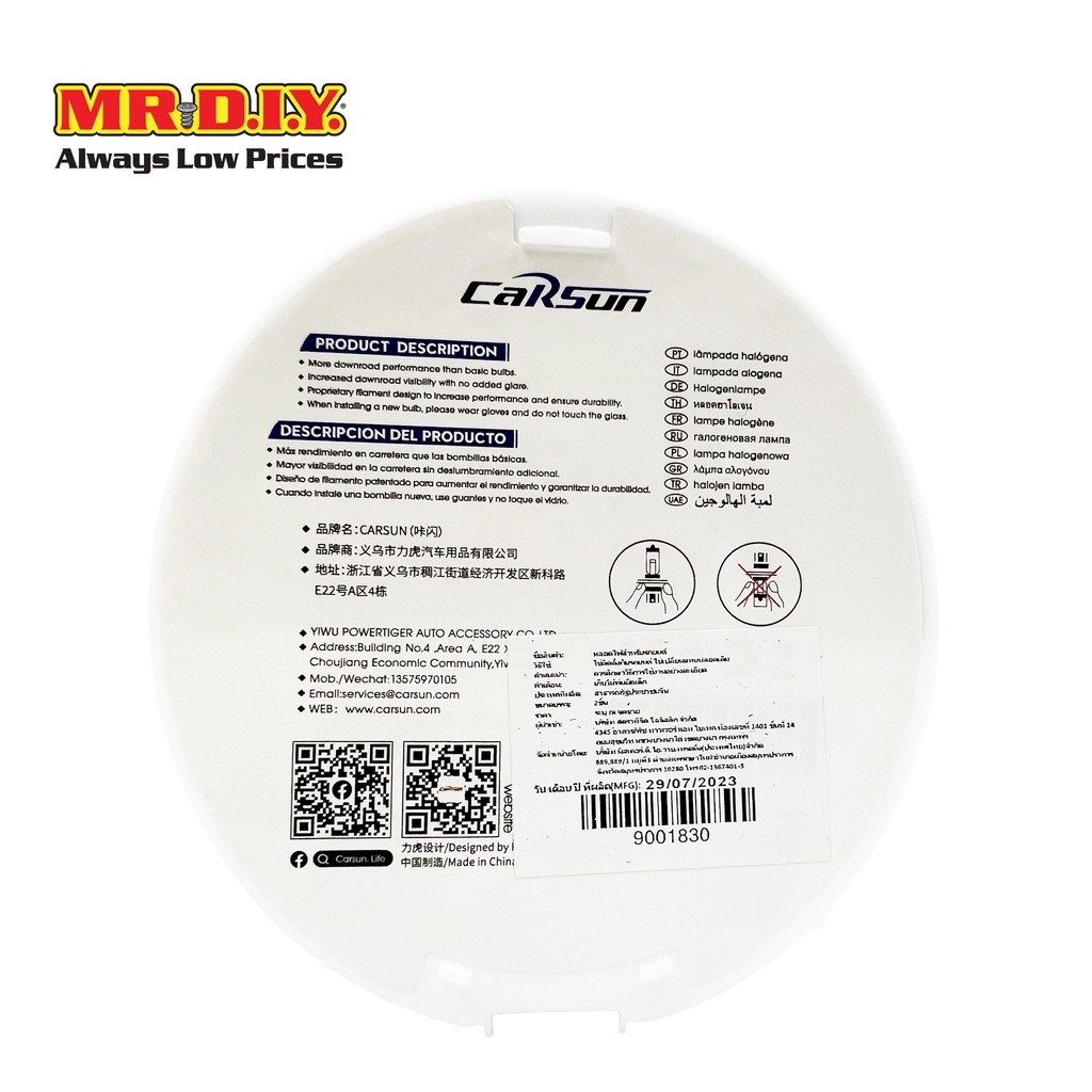 CARSUN หลอดฮาโลเจนสำหรับรถยนต์ 12V จำนวน 2 ชิ้น