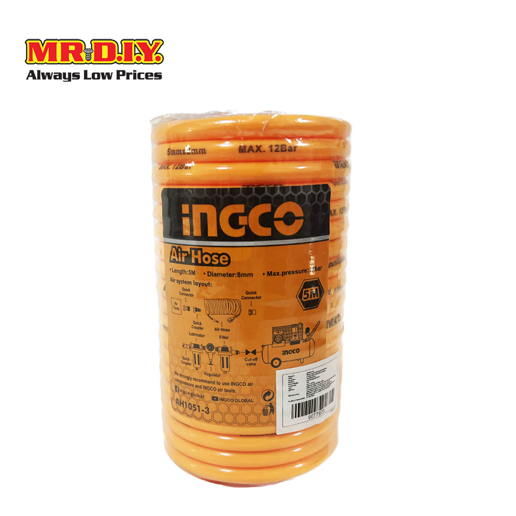 INGCO ท่อต่อสายลม เส้นผ่านศูนย์กลาง 8 มม. ยาว 5 เมตร แรงดันสูงสุด 12 bar