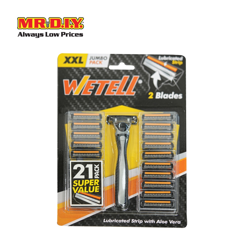 WETELL ชุดมีดโกนแบบสองใบมีด พร้อมใบมีดสำรอง (1 ด้าม + 21 ชิ้นใบมีดสำรอง/แพ็ก)