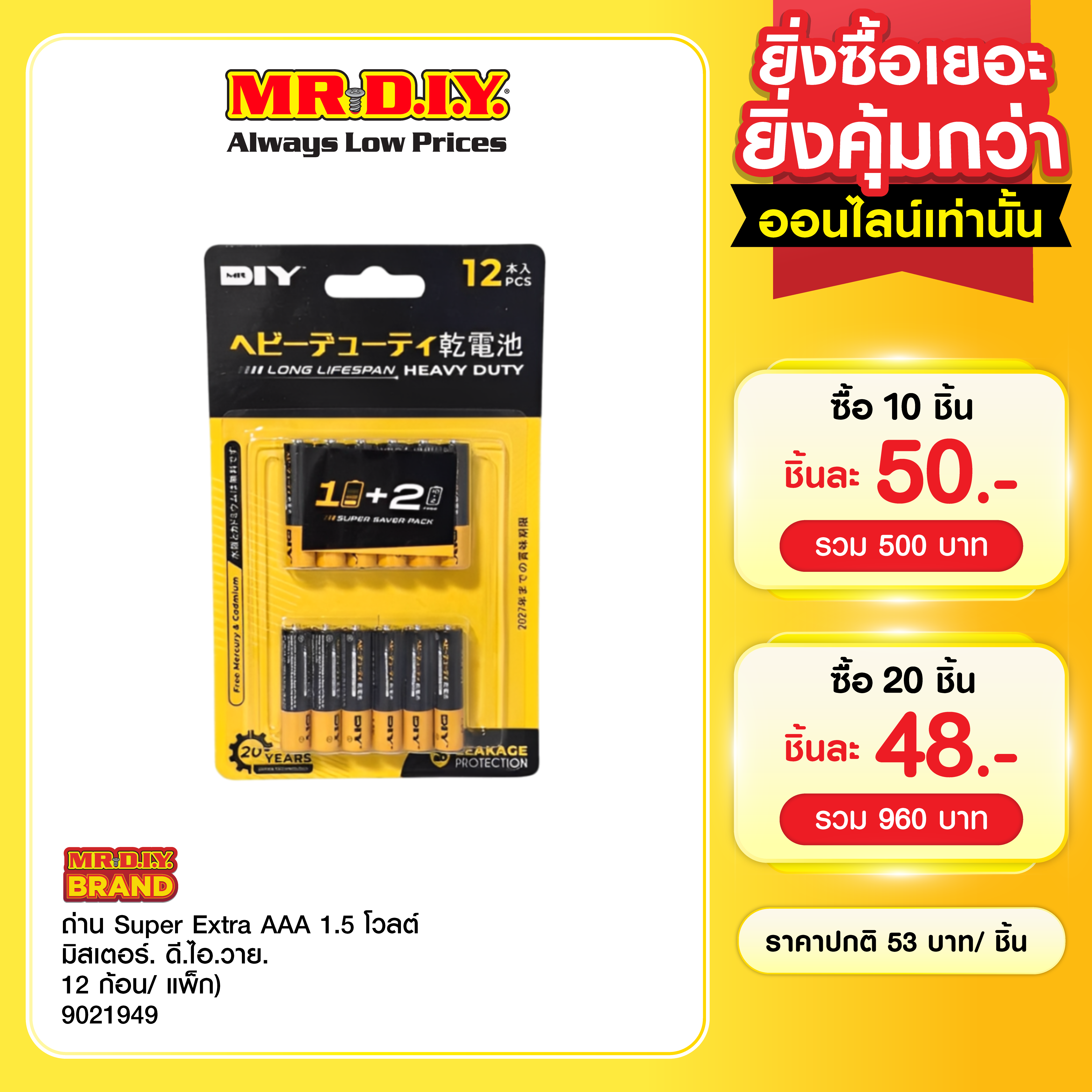 MR.D.I.Y. ถ่าน Super Extra AAA 1.5 โวลต์ (12 ก้อน/แพ็ก)