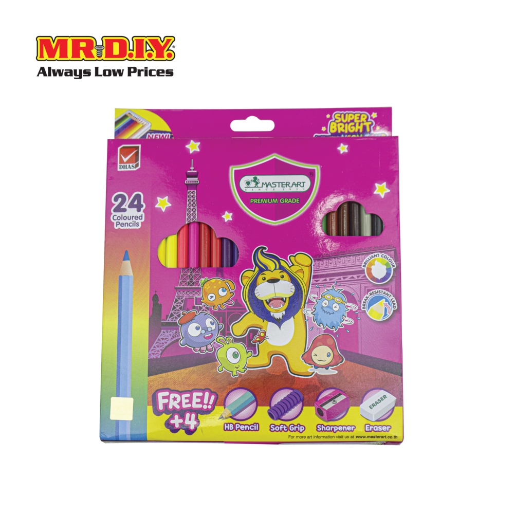 มาสเตอร์อาร์ต ซุปเปอร์ไบร์ท ดินสอสีไม้ 12 สี แถม 4 ชิ้นในกล่อง (ดินสอไม้ HB/ปลอกจับปากกา/กบเหลา/ยางลบ)