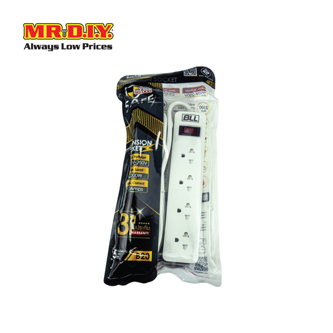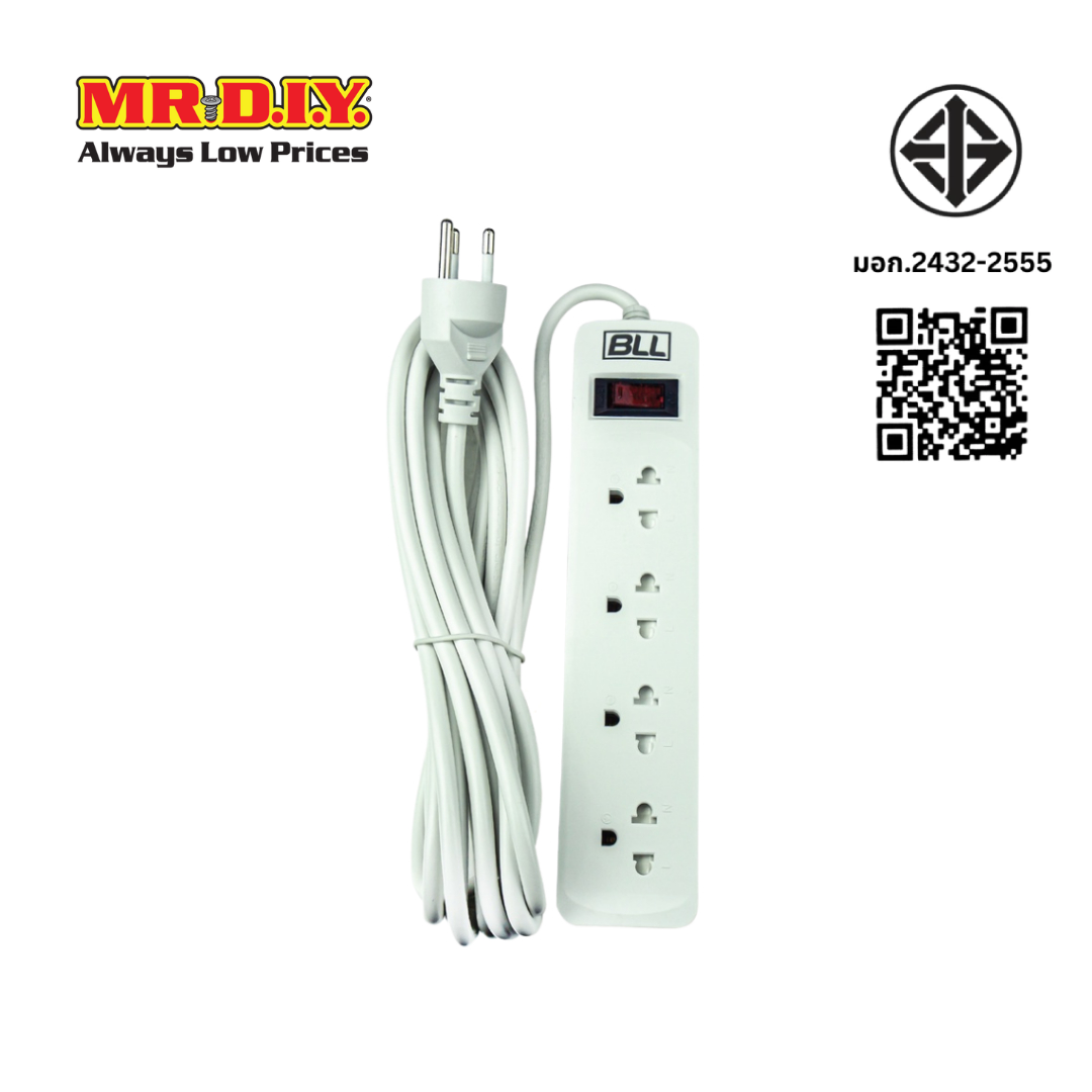 BLL รางปลั๊กไฟ 4 ช่อง 1 สวิตซ์ 2,300 วัตต์ ยาว 5 เมตร
