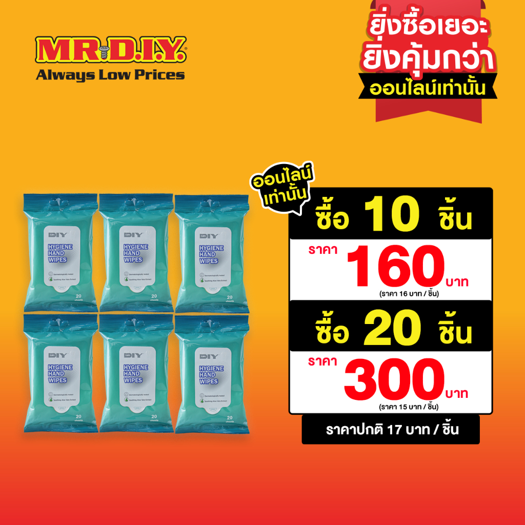 MR.D.I.Y. ผ้าเช็ดมือเปียกอนามัย (จำนวน 20 แผ่น/แพ็ก)
