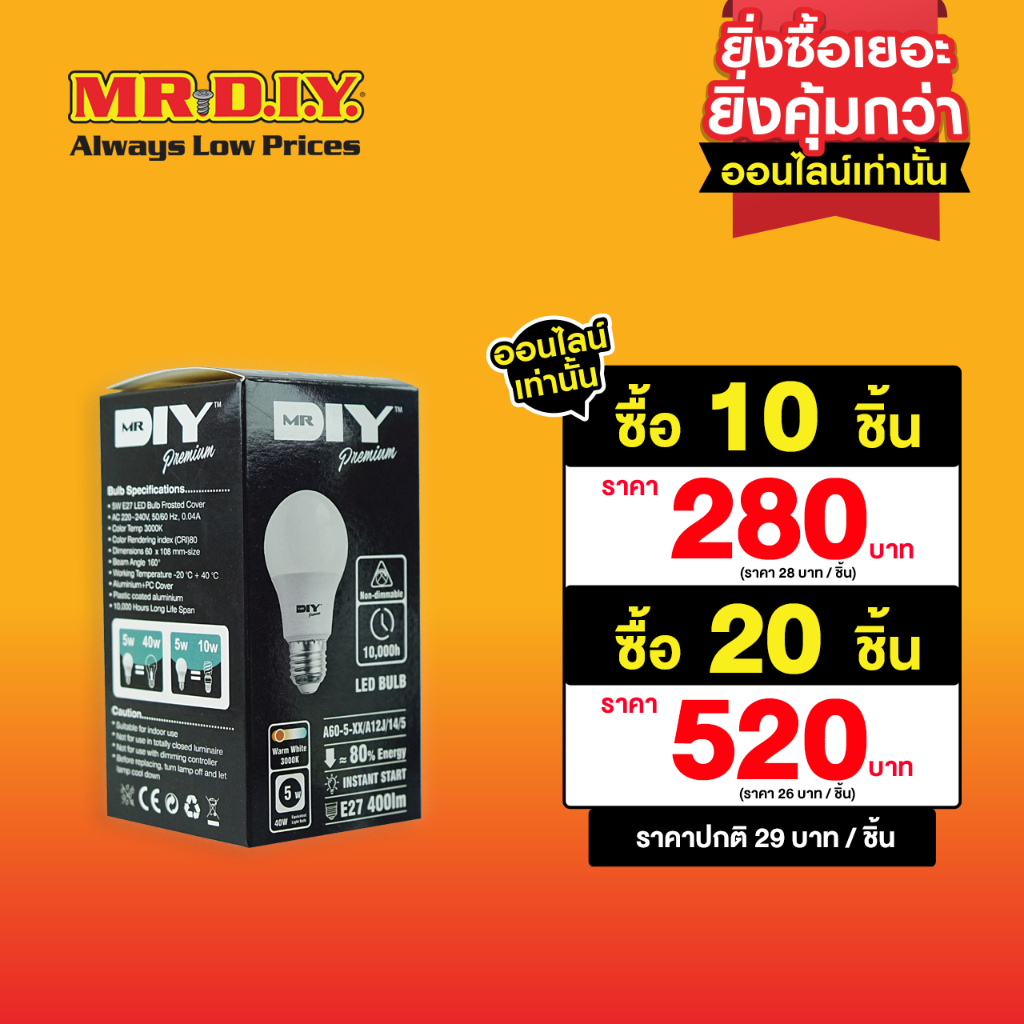 MR.D.I.Y. หลอดไฟ LED ขั้ว E27 กำลังไฟ 5 วัตต์ Warm White