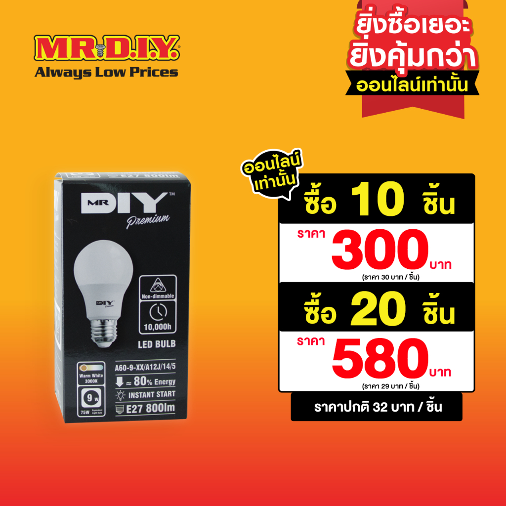 MR.D.I.Y. หลอดไฟ LED ขั้ว E27 กำลังไฟ 9 วัตต์ Warm White