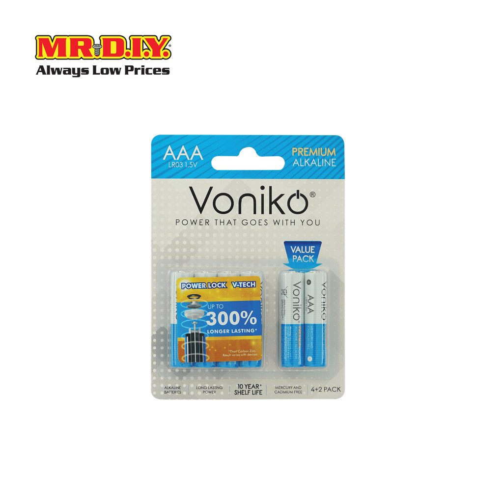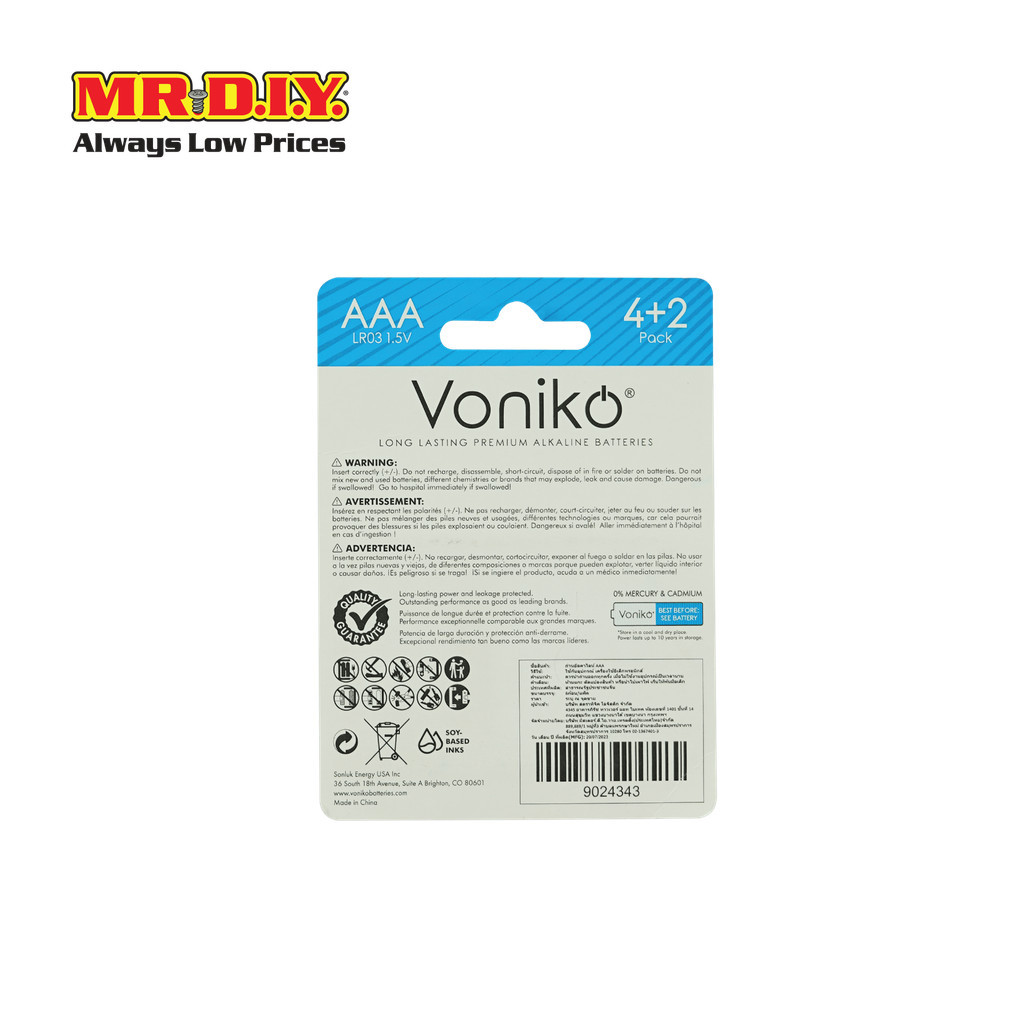 VONIKO ถ่านพรีเมี่ยมอัลคาไลน์ LR03 AAA 1.5 โวลต์ (4+2ก้อน/แพ็ก)