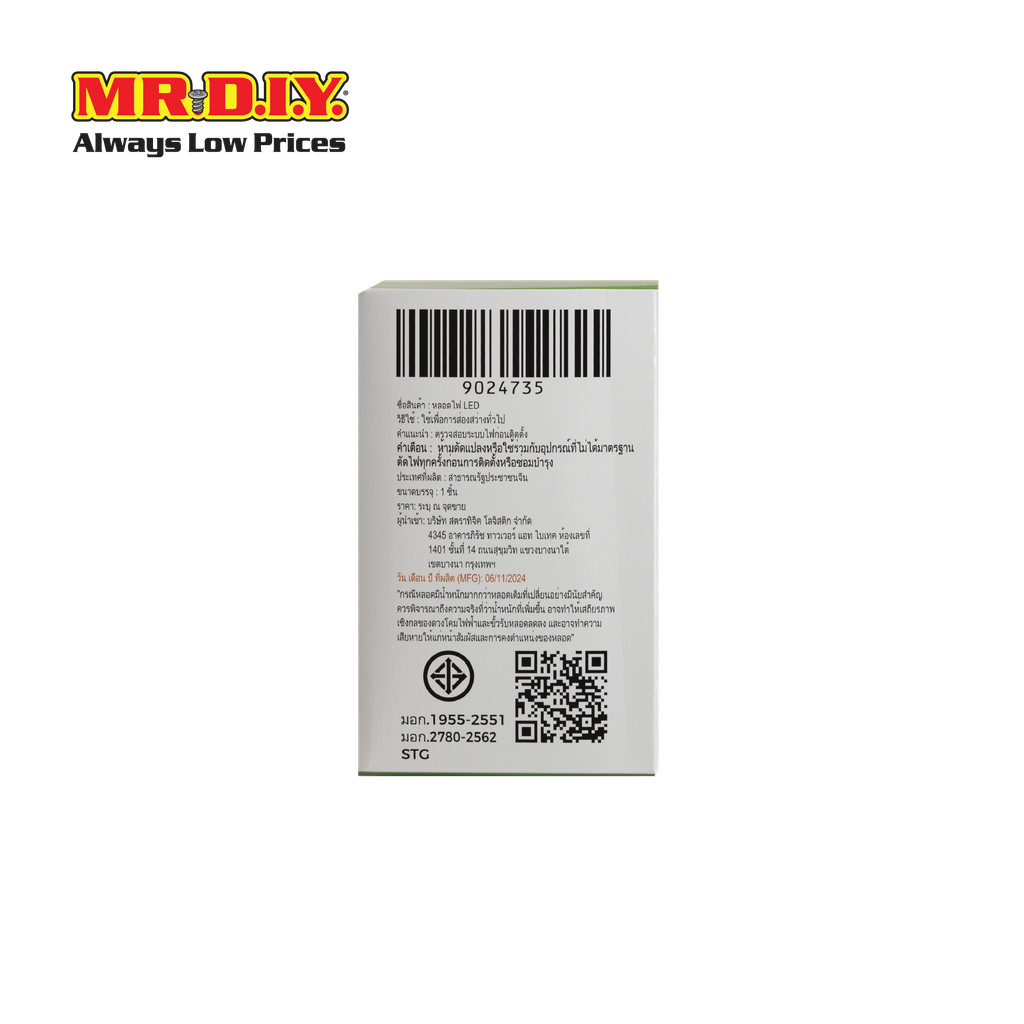 - ตัวหลอดไฟให้แสงขาว ความสว่างเต็มพื้นที่