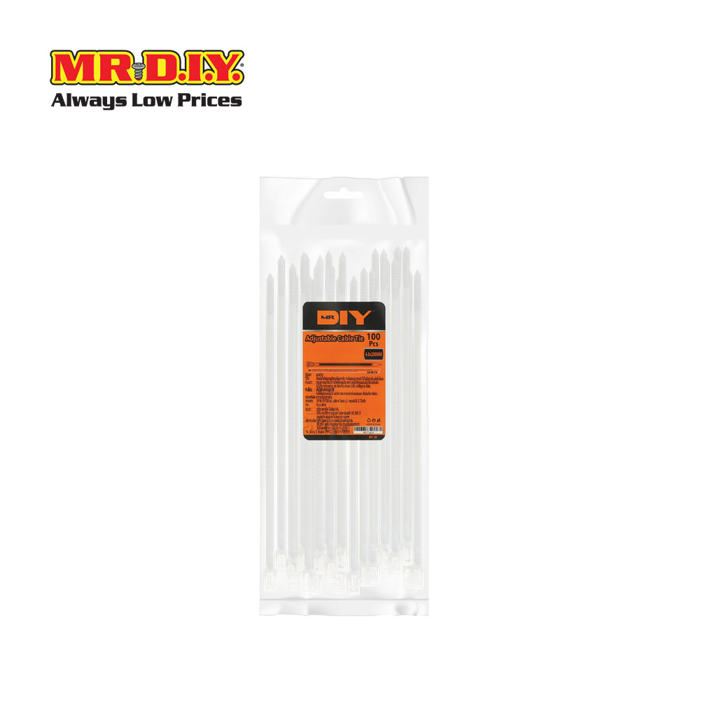 MR.D.I.Y. เคเบิ้ลไทร์แบบปรับระดับและถอดออกได้ สีขาว ขนาด 8 นิ้ว (4.8 X 200 มม.) จำนวน 100 เส้น/ห่อ